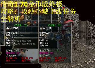 在传奇1.70金币版中,攻沙战无疑是游戏中最激动人心的活动之一。要成功夺取沙城,需要精心策划和协同合作。本攻略将为您提供攻沙夺主的完整主线任务解析,以及一些关键操作秘诀,以帮助您在这个史诗般的战场上取得胜利。